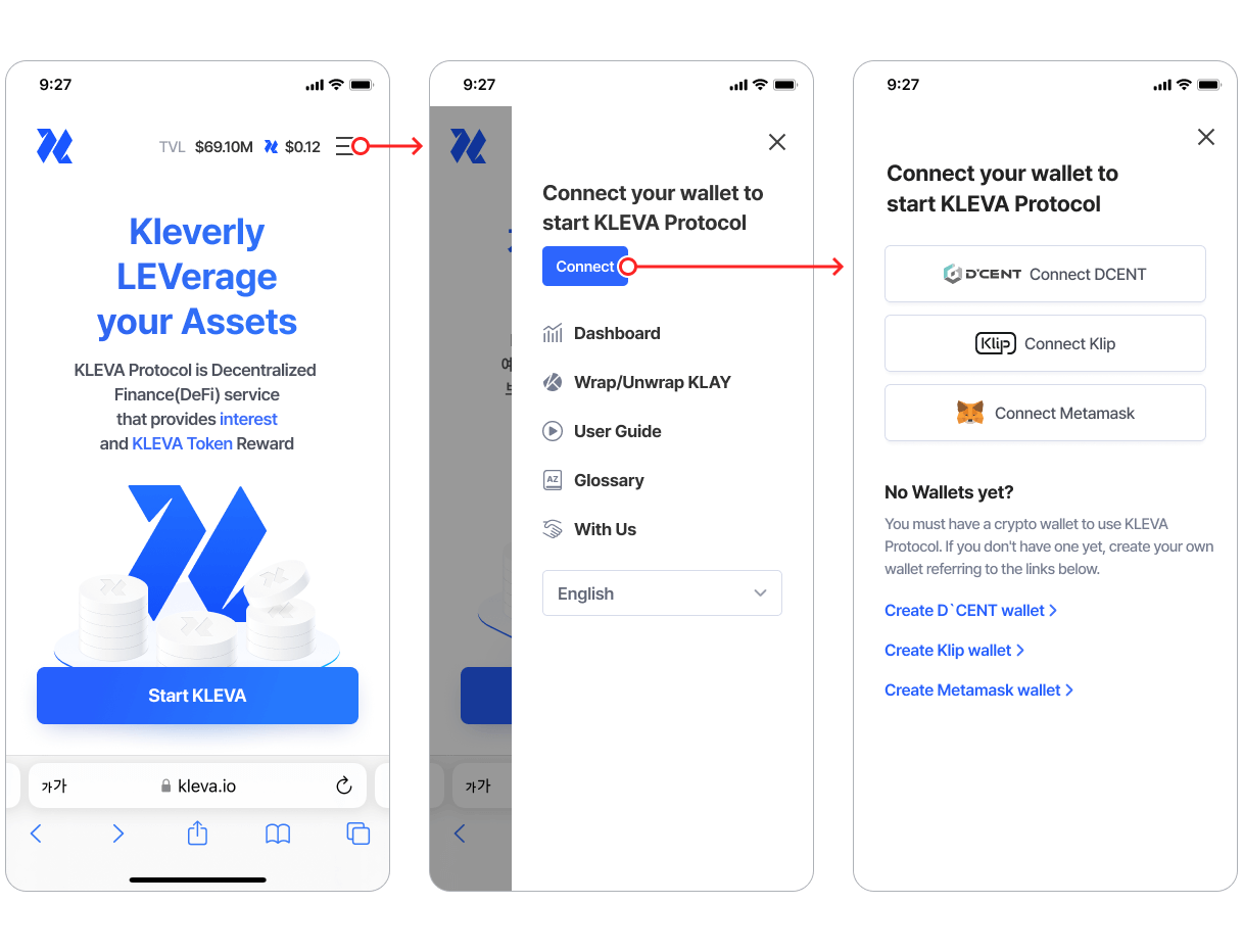 ### <mark style="color:blue;">Connecting Wallet to KLEVA Protocol (Mobile)</mark>